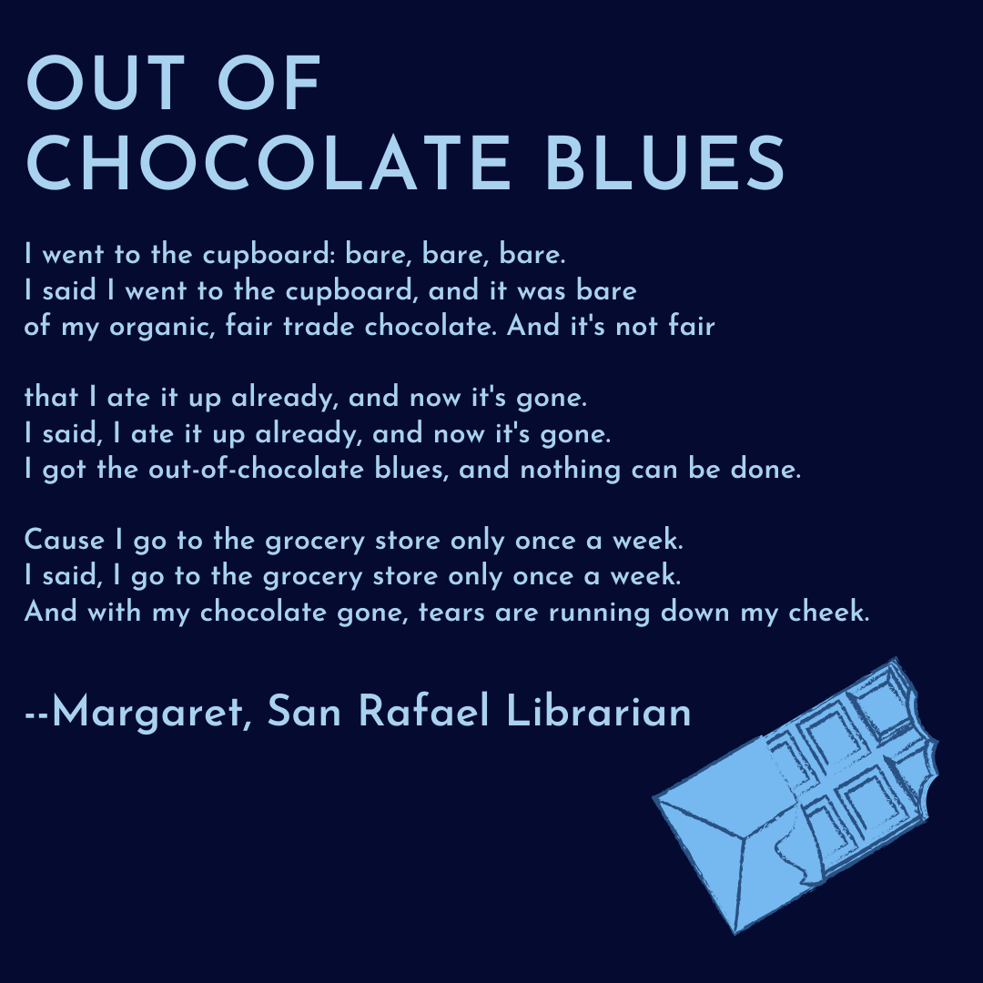 Got the quarantine blues? Us too. Read some blues poetry created by San Rafael youth in our Blues Poetry Class led by Librarian Lea Aschkenas and commiserate with us. Have your own blues poetry to share? Post it and tag us on Facebook and Instagram. #quarantineblues#blues#bluespoetry#walterdeanmyers