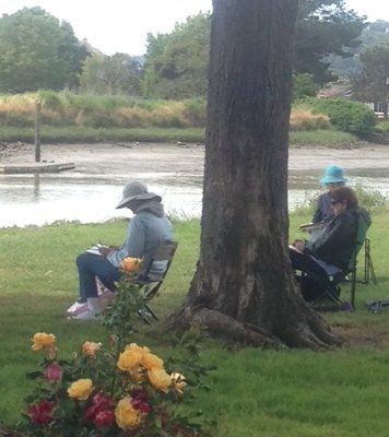 Sandy Pires member of MMSG (Monday Morning Sketch Group) will open her sketch kit and show you how to get started describing the place you are in, using just a few materials.