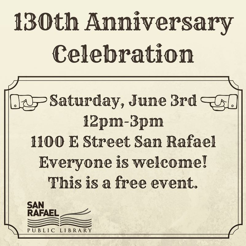We are celebrating 130 years of public library service here in beautiful San Rafael! In June of 1887 the Women’s Christian Temperance Union established a coffee and reading room in the town of San Rafael. The Marin Journal of June 2, 1887, announced, “The Coffee Room and Free Library is now open.” We are proud to continue the tradition of public library service to our neighbors today!