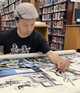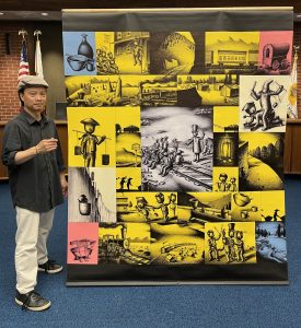 The San Rafael Public Library is honored to present the artist, Evri Kwong, and his latest project:The Chinese Railroad Strike. Regular library patrons may recognize Evri as a familiar face in the library, working near the upstairs service desk. Evri is a native of Chinatown, a graduate of SF Art Institute, and professor. Read more about himhere.