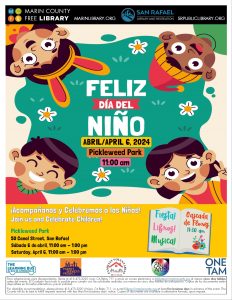 Día Del Niño/Children’s Day is an annual celebration in Latin America, it is a day to honor the lives of children, their well-being and happiness. Join our community fiesta for a day of play, books giveaways and lots of fun at Pickleweed Park in San Rafael/Canal! Get ready to sing and dance with a musical performance by Cascada de Flores!