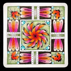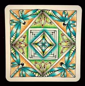 For beginners, you can pick up a one-time, free starter kit at the upstairs adult reference desk at the San Rafael Library (1100 E Street). The kit contains 4 – 4.5 x 4.5 Zentangle tiles, one Micron 05 pen, and colored pencils.